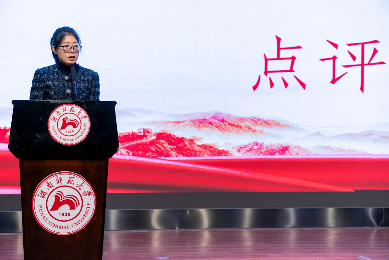 教师教育系团总支书记熊椰作总结发言。她强调,中国式现代化是一条立足国情,顺应时代,注重创新的发展道路,青年一代的担当和作为尤为关键,实现强国建设,民族复兴的宏伟目标需要青年展现最积极,最有生气的力量,要让青春在党和人民最需要的地方绽放绚丽之花,不断谱写不愧于前辈,不愧于人民,不愧于时代的壮丽诗篇。
