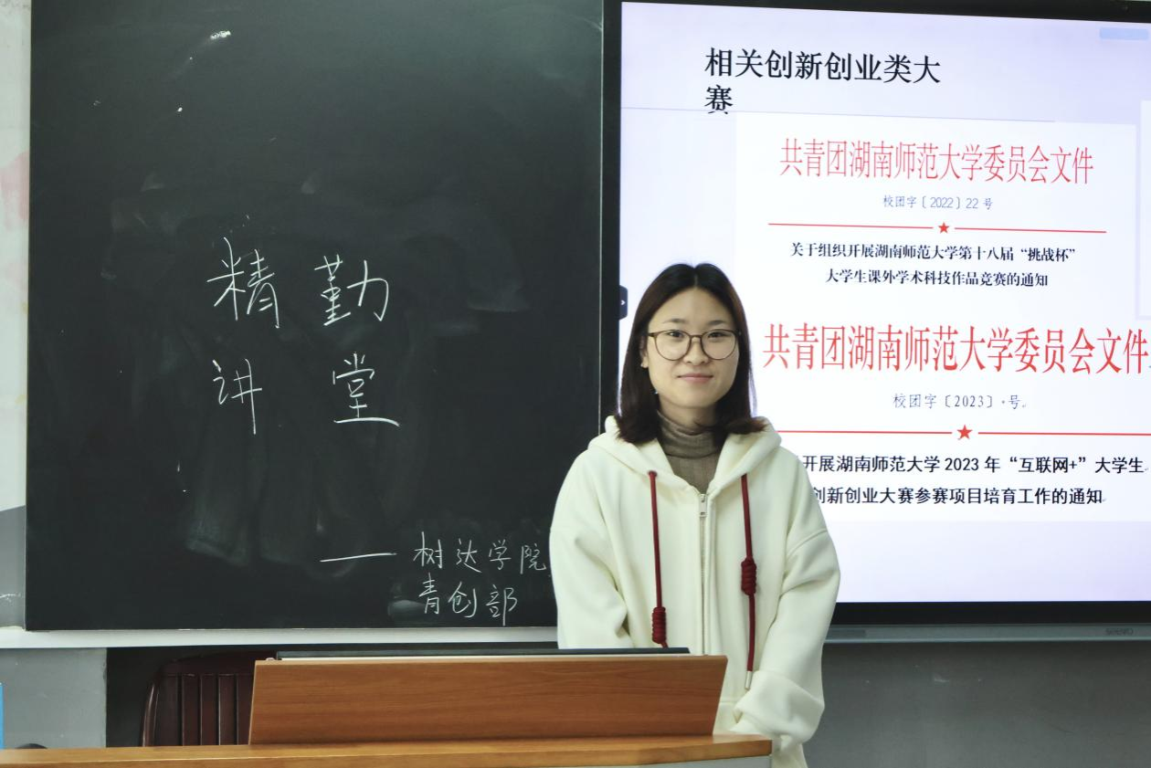 (记者 刘紫琼 陈锦红 周劲翔)2月27日中午,我院团委青年创新创业指导部在树达楼115教室开展以“创无限可能,践社会担当梦”为主题的精勤讲堂活动。2021级电子信息科学与技术专业易雨担任主讲人。