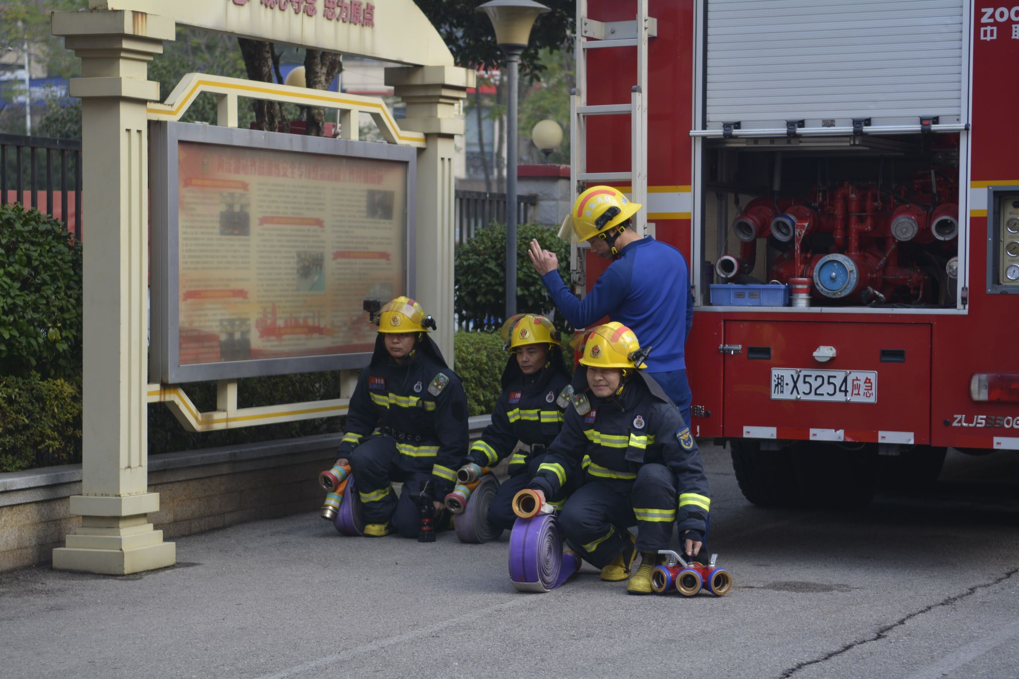 梅溪湖消防救援站讲解员为成员们普及了有关消防安全的知识。他介绍了不同消防车的功能和车内设备,讲解了每种装备的用途和操作方法,教导成员们如何区分两种消防服应用的场景,如何预防火灾以及面对火情时的处理方法。