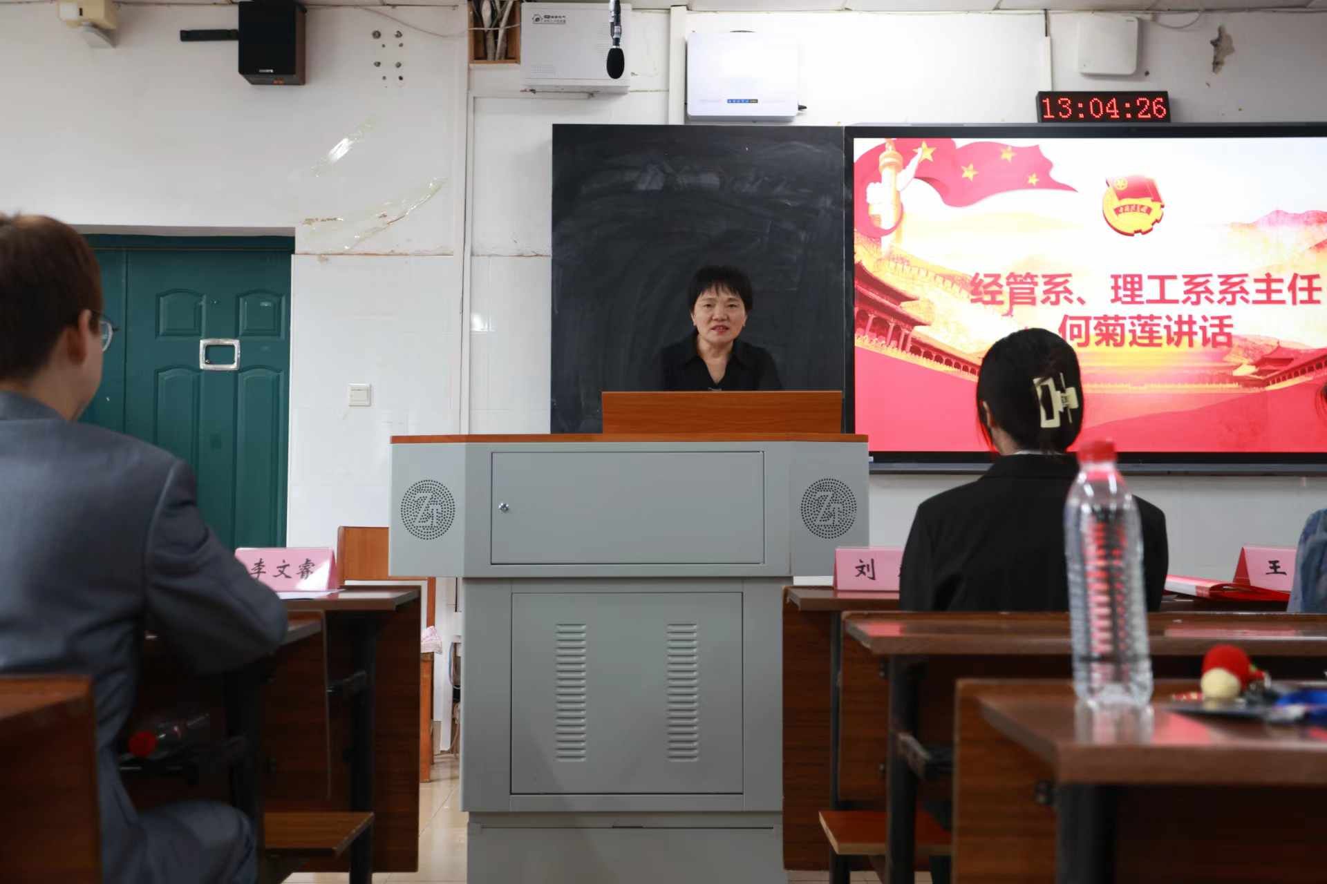 何菊莲作总结发言。她对团学两会过去一年的工作表示肯定,并对全体学生干部提出三个要求,一是要培养感恩之心,提升政治素养,加强知识积累与学习,以实际行动表达感恩与信任之情;二是恪守职责,敢于担当,增强责任感与使命感,坚决履行岗位职责;三是强化团队团结协作能力,在学生工作中起好领头羊作用,携手共创辉煌。她希望,同学们能展现出锐意进取的精神,不断追求卓越,以严谨和踏实的工作态度,共同书写经管系、理工系团学两会的新篇章。