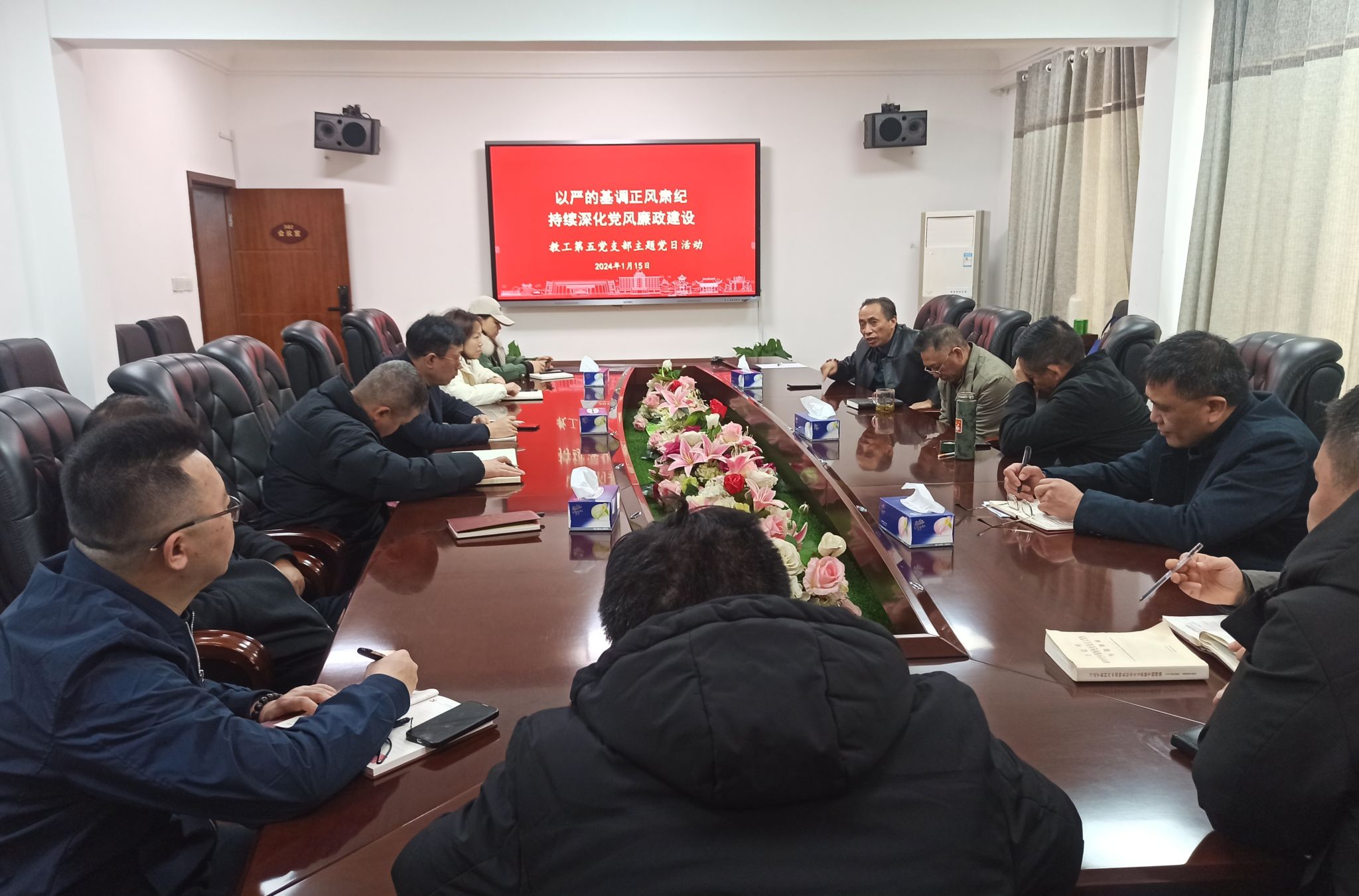 戴著辉领学了二十届中央纪委二次全会上对作风建设作出的重要部署,同时结合警示教育专题片中一桩桩鲜活的案例,为全体党员干部再次敲响廉政建设警钟。他要求党员同志正风肃纪,持续深化落实中央八项规定精神,坚决纠治“四风”,推进作风建设常态化长效化。