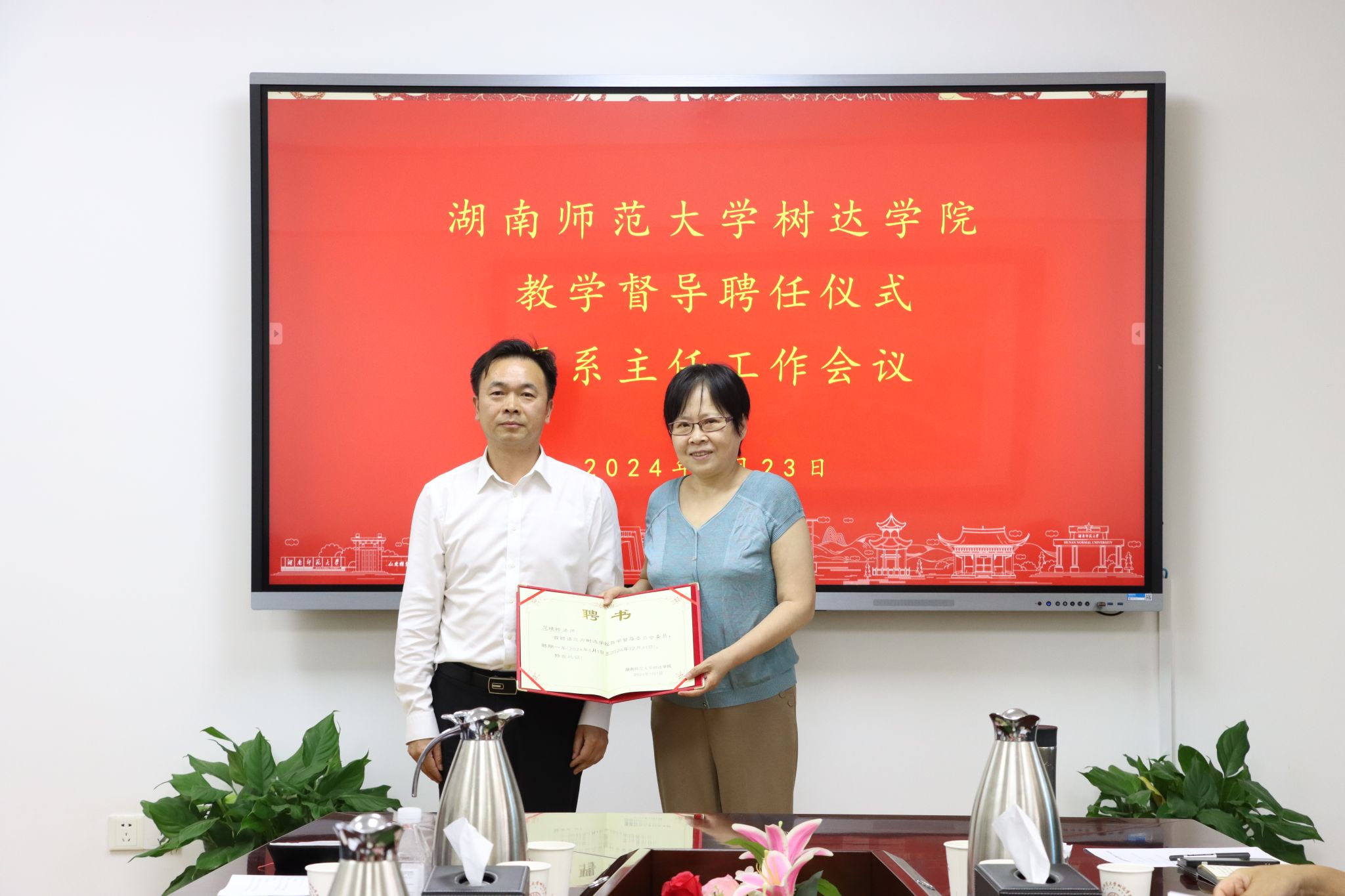 (记者 李秋艳 曹钐瑶 汤心仪)4月23日下午,我院在办公楼302会议室召开教学督导聘任仪式暨系主任工作会议。院长向坚持出席会议。副院长梁蓓蓓主持会议。