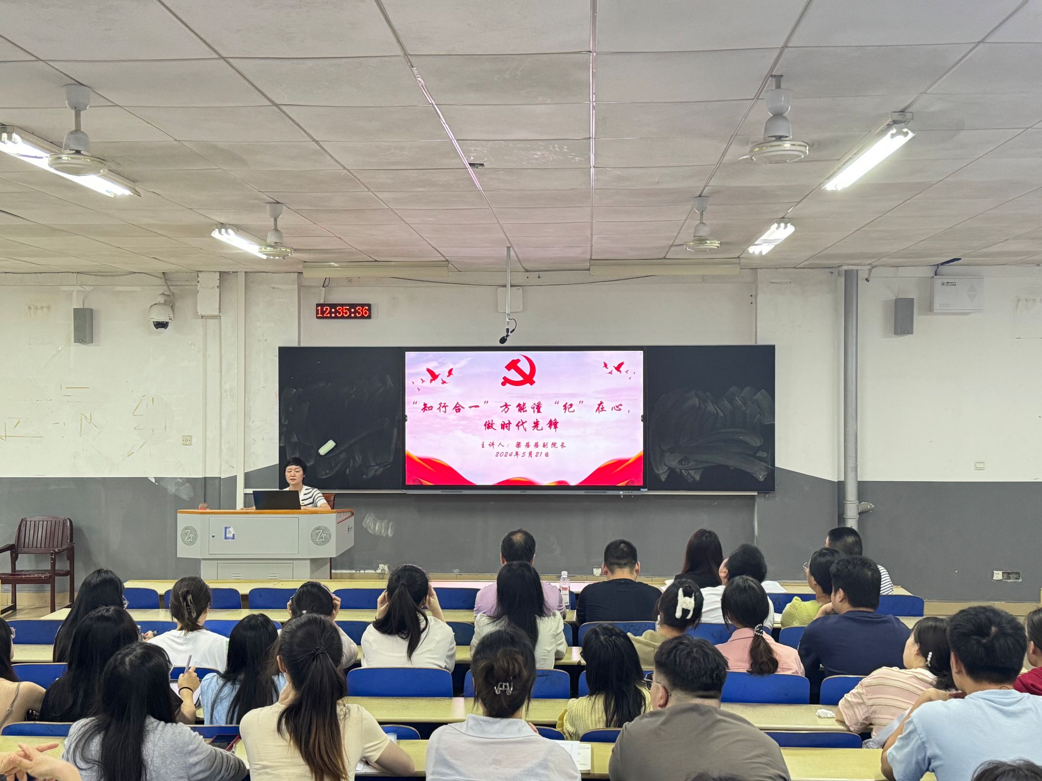 (通讯员 周香 马炜浩 吴语彤)5月21日中午,我院副院长梁蓓蓓在树达楼115教室为教师教育系学生党支部讲授以“‘知行合一’方能谨‘纪’在心,做时代先锋”为主题的党课。