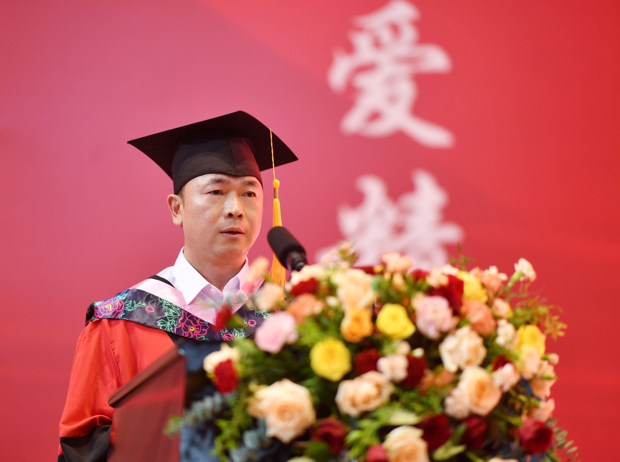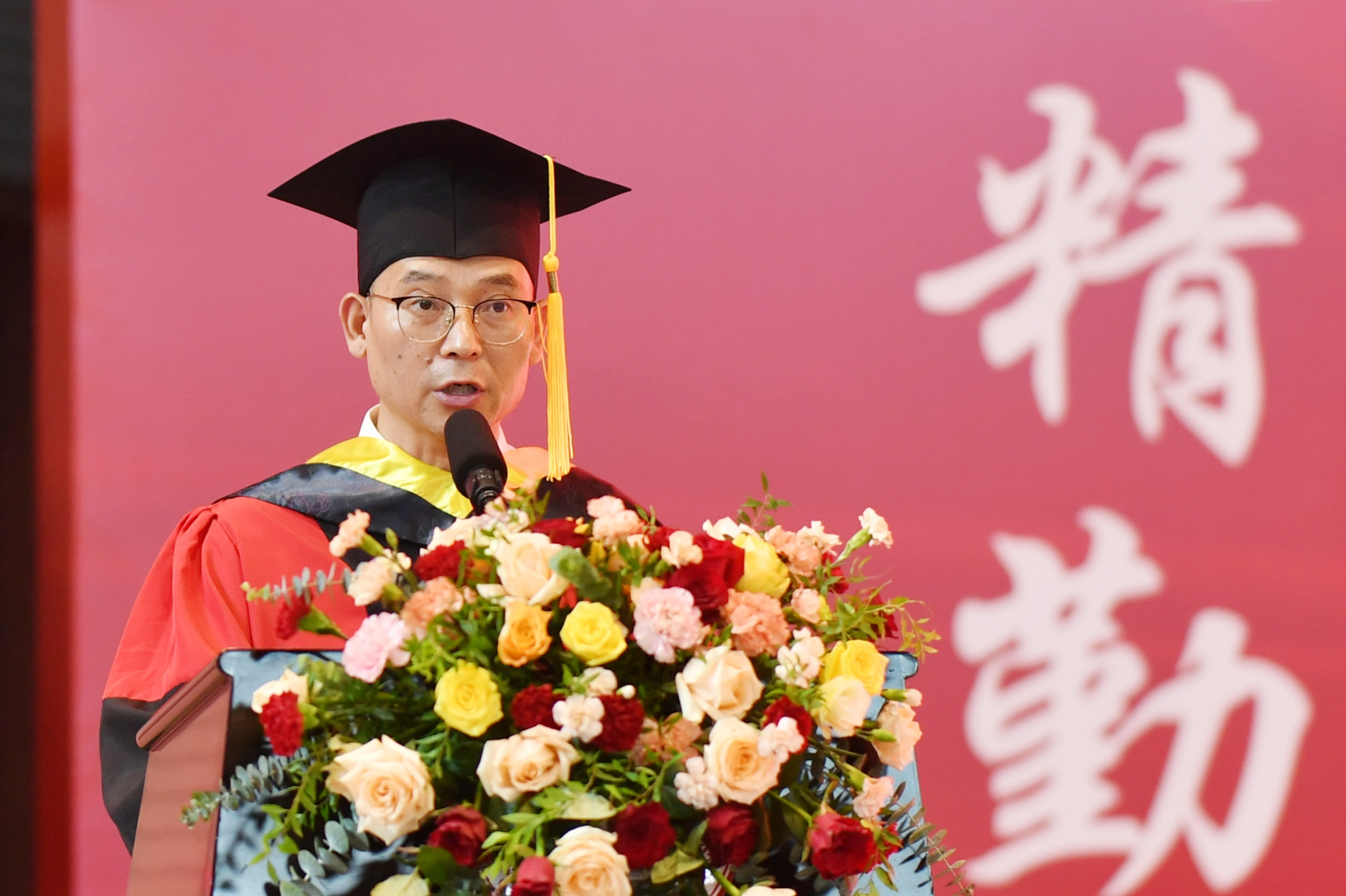 校友代表何玲回顾了自己创业的心路历程、分享了工作成就,并希望毕业生们不忘以“仁爱精勤”的校训要求自己,以实际行动回报母校的培育之恩。