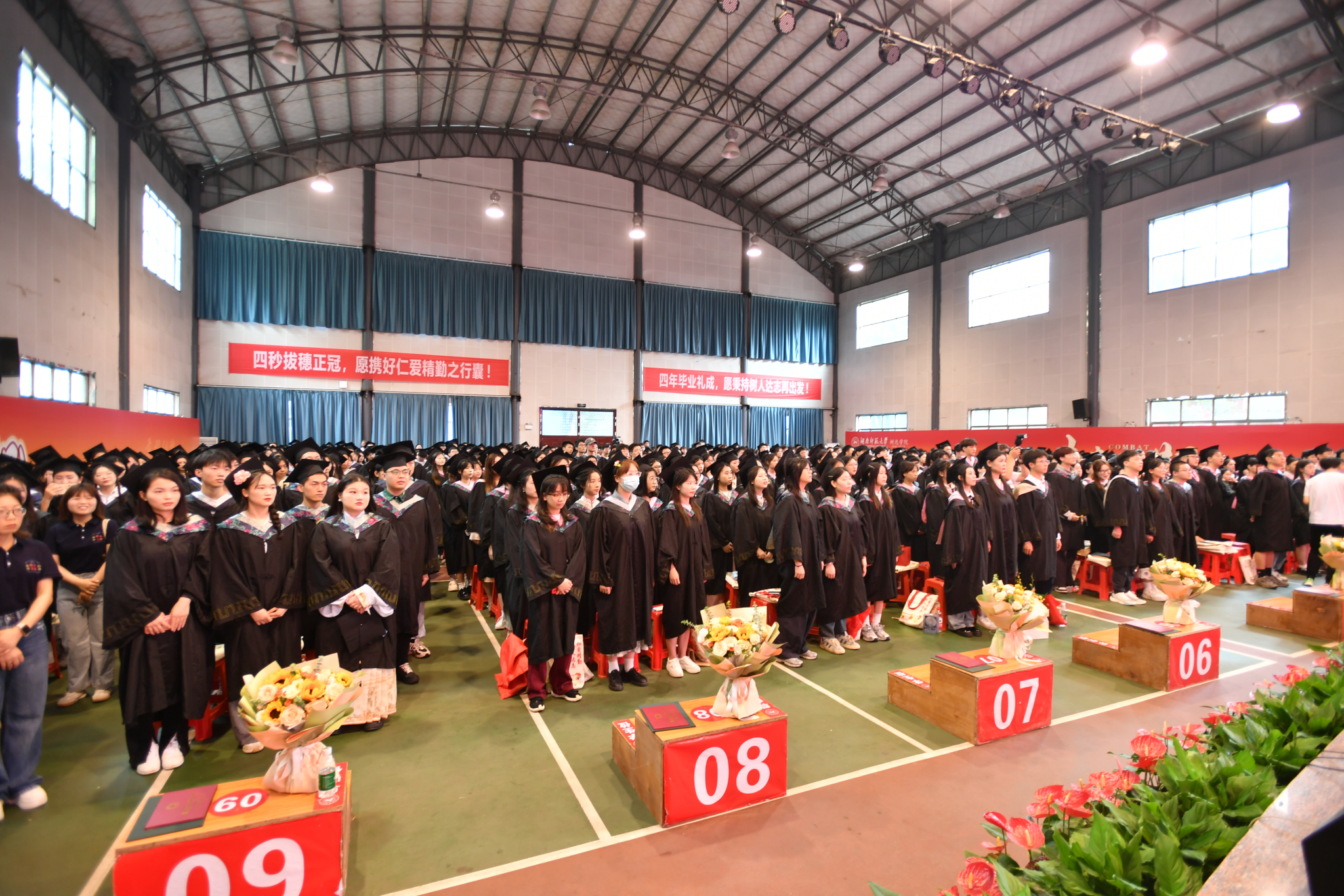 2024届全体毕业生、校友代表、教职工代表、毕业班辅导员等参加典礼。