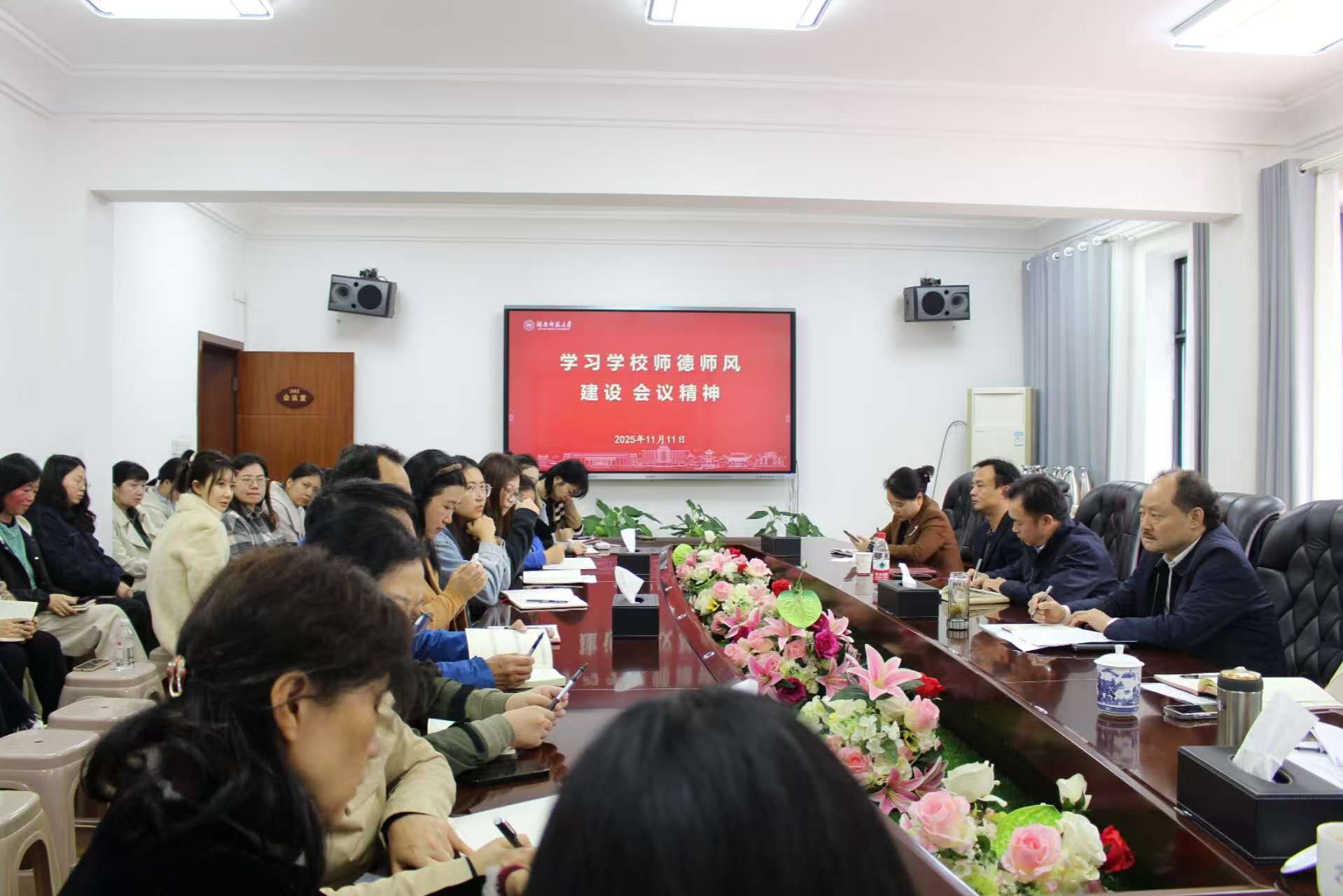 纪检书记张剑从认识师德师风建设的重要性、反面典型案例分析和持续抓好问题整改等几个方面传达学习了学校师德师风建设暨科研诚信专题警示教育会议精神。