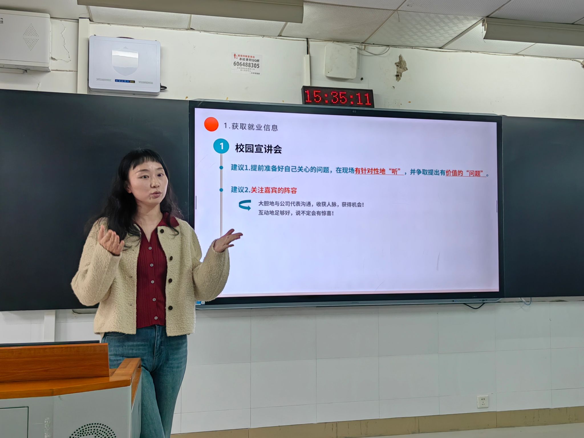 张杜豆老师围绕求职四部曲,从职业生涯规划、就业信息获取、求职功课准备、简历制作技巧、求职流程规范、就业手续办理等方面展开讲解,为同学们进行全面细致的指导。张杜豆老师结合当前就业形势提醒同学们尽早行动、主动出击,拓宽信息渠道,要密切与学校、老师的联系,树立求职信心;要提前了解行业与岗位要求,充分做好前期准备,精心打磨针对性强、细节完善的个人简历。同学们表示,张杜豆老师的讲座实用性强,有效解决了自己求职过程中的困惑,增强了求职就业信心。