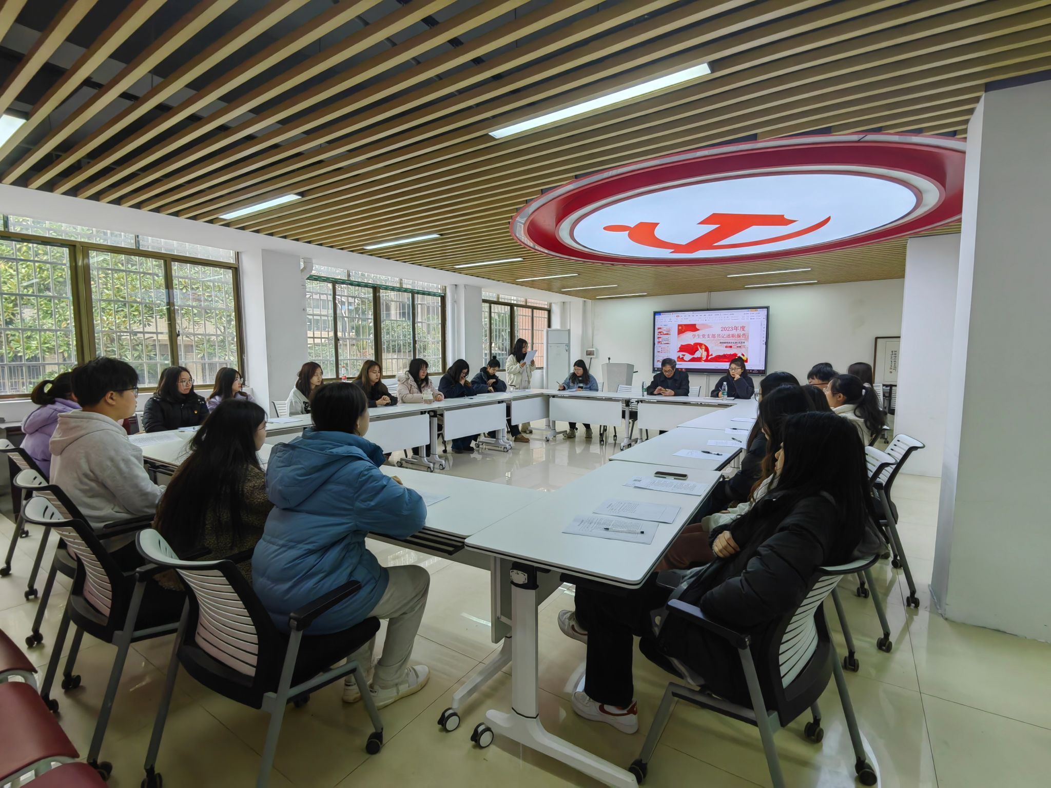 教师教育系学生第一党支部书记胡可曼对2023年度工作进行了述职汇报。她从党支部基本情况、推进理论武装、执行上级部署、支部建设、党员管理、学院转设工作等方面详细阐述了支部存在的不足及改进的计划,她表示,今后会继续坚持做好自己,努力带领大家建设更加优秀的党支部。