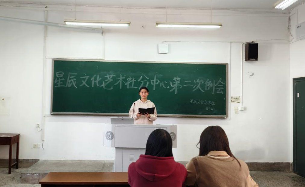 (记者 李博书 谢先璇 赵丙阳)3月12日中午,我院星辰文化艺术社张公岭分中心理事会在张公岭校区教学楼107教室召开本学期第二次例会。会议由星辰文化艺术社张公岭分中心负责人蒋雯君主持。