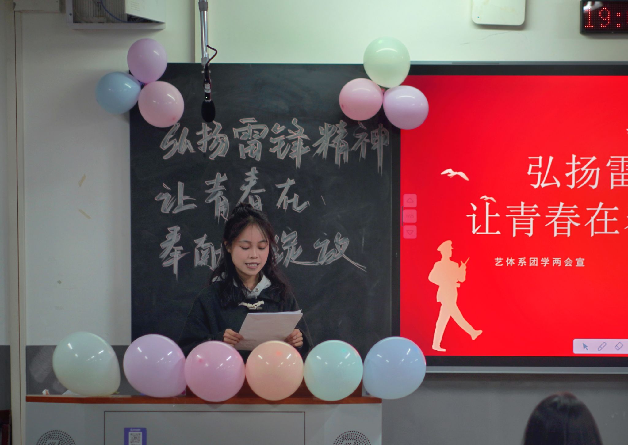 (记者 聂瑶 李晓蕾 林扬)3月20日晚,我院艺体系团学两会在树达楼306教室开展以“弘扬雷锋精神,让青春在奉献中绽放”为主题的团日活动。活动由艺体系组织部副部长莫雅雯主持。