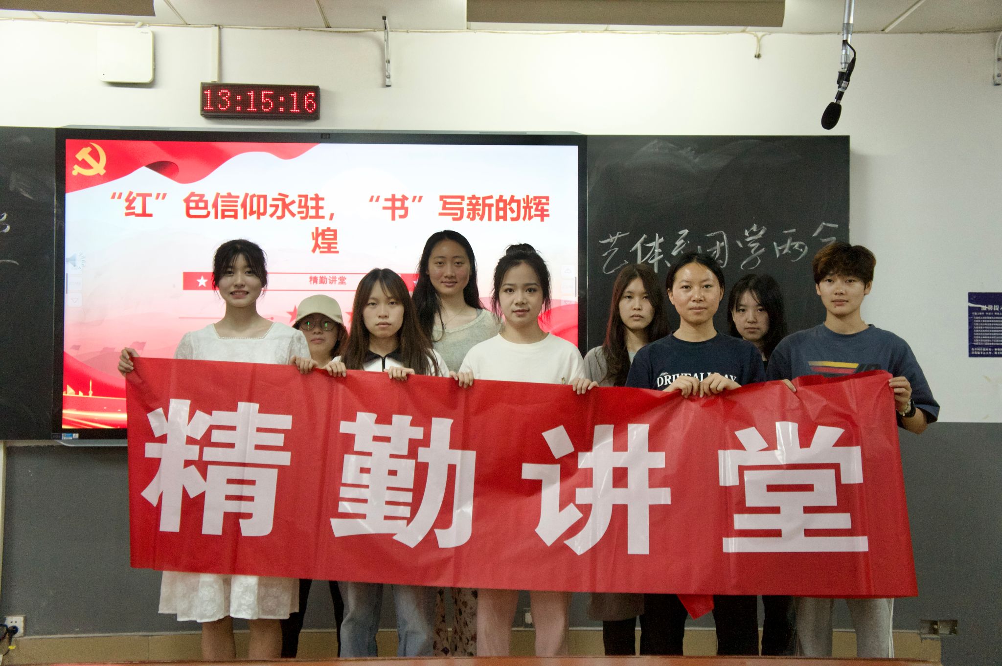 (记者 聂瑶 文思宇 龚宣)4月25日中午,我院艺体系在树达楼206教室开展以“‘红’色信仰永驻,‘书’写新的辉煌”为主题的精勤讲堂活动。2020级广播电视编导专业肖敬怡和2021级视觉传达设计专业刘琳担任主讲人。活动由社会实践部副部长丁优华主持。