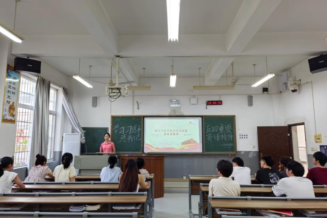 廖亮作总结发言。她表示,作为新时代青年,同学们肩负着时代赋予的崇高使命,不应辜负习近平总书记对广大青年的重视与关爱,要将其转化为前进的动力与鞭策。她强调,新时代应有新作为,同学们要勇担时代重任,坚定理想信念,崇尚实干实学,以五四精神为指引,牢记使命,为实现中华民族伟大复兴的中国梦不懈奋斗。