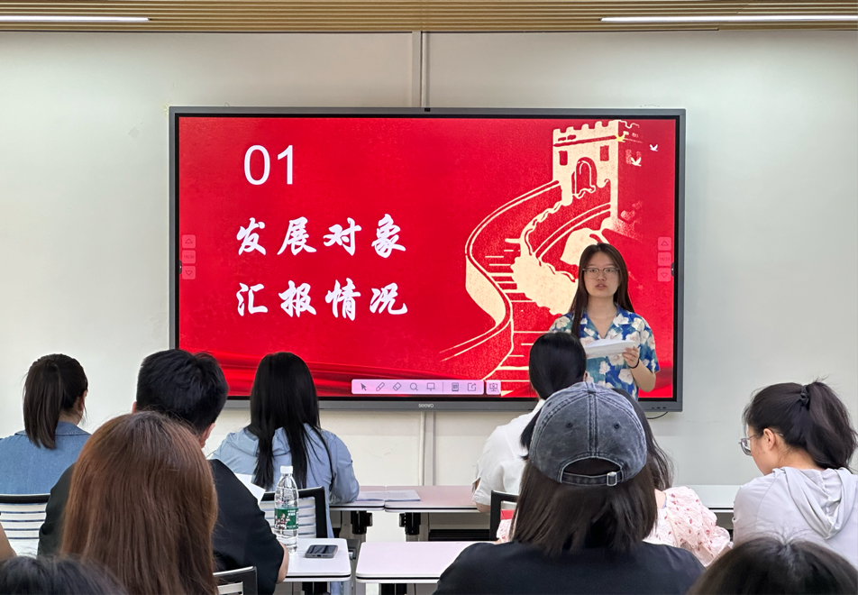 彭娇代表支部委员会对刘亮等10名发展对象的审查情况进行报告。