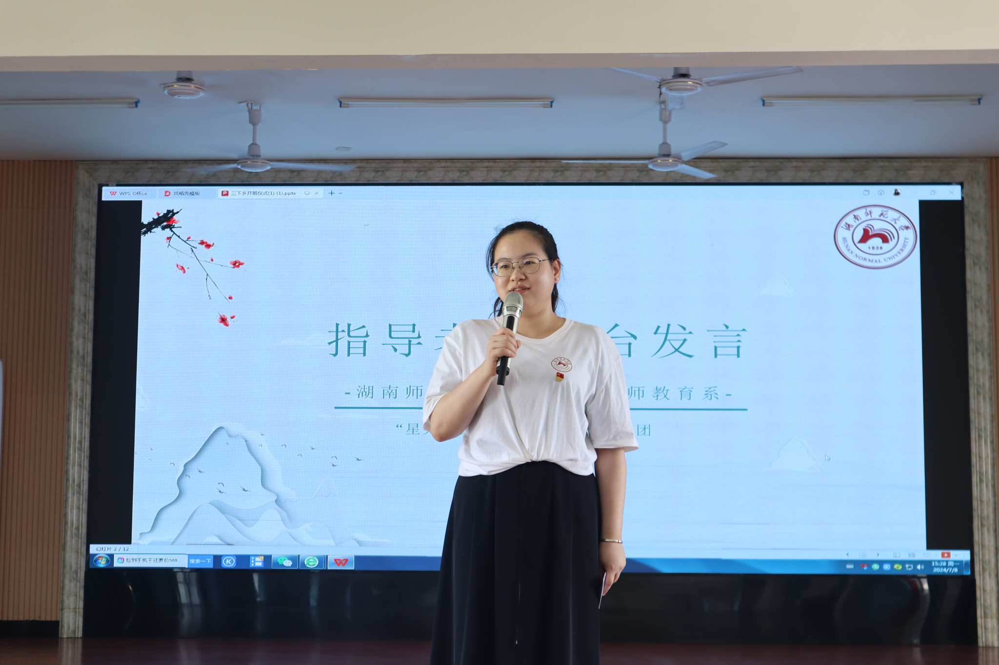 王峰作总结发言。他对良田学子积极的精神面貌表示肯定,并向“星火筑梦”三下乡团队队员表达感谢,希望通过音乐、美术、舞蹈等兴趣课程让孩子们在快乐中收获成长。