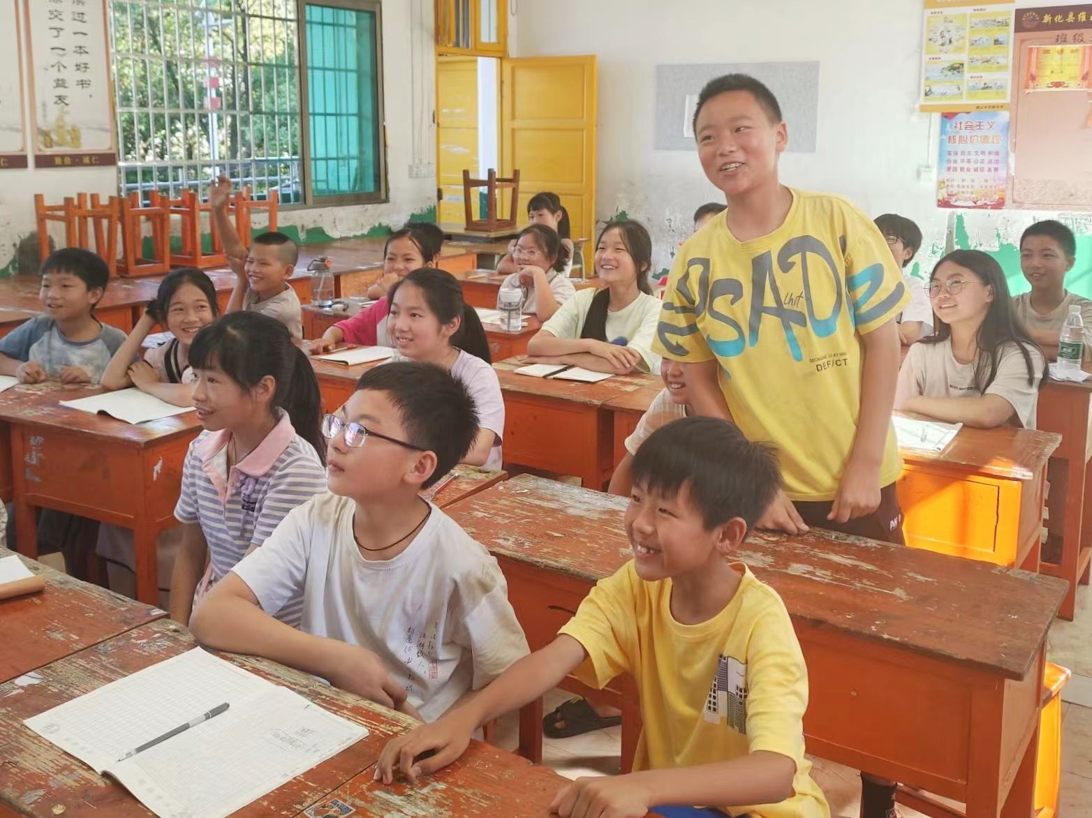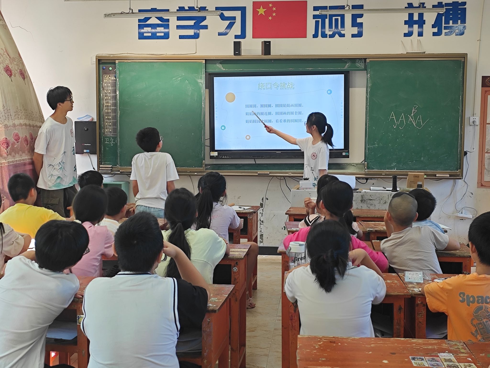 (记者 邹韵霖 蒋婷婷 刘艺杰)7月8日上午,我院经管系、理工系三下乡“青树行”暑期社会实践团在四都中学开设普通话特色课程。宣传组组员伍扬担任主讲人。