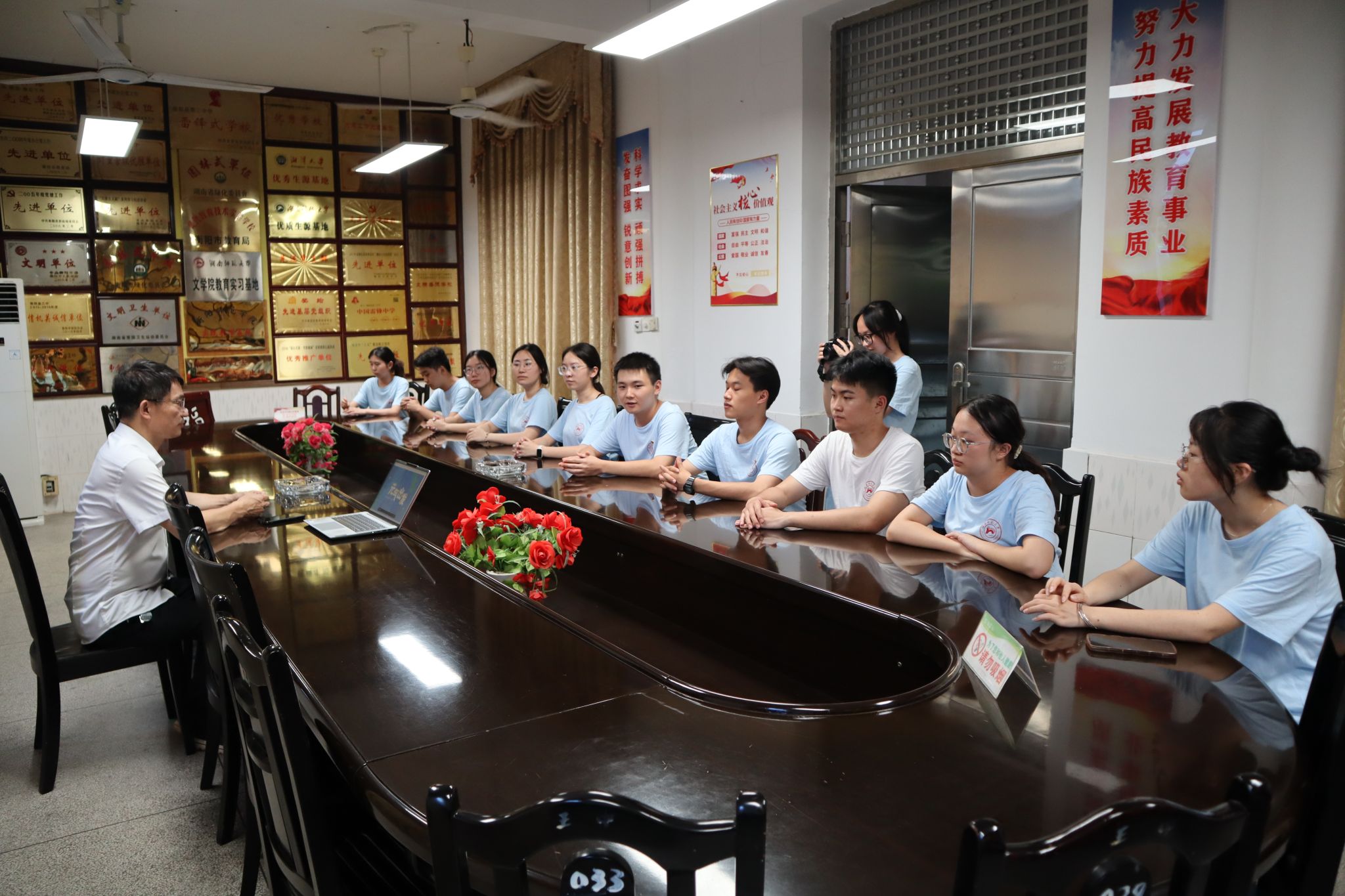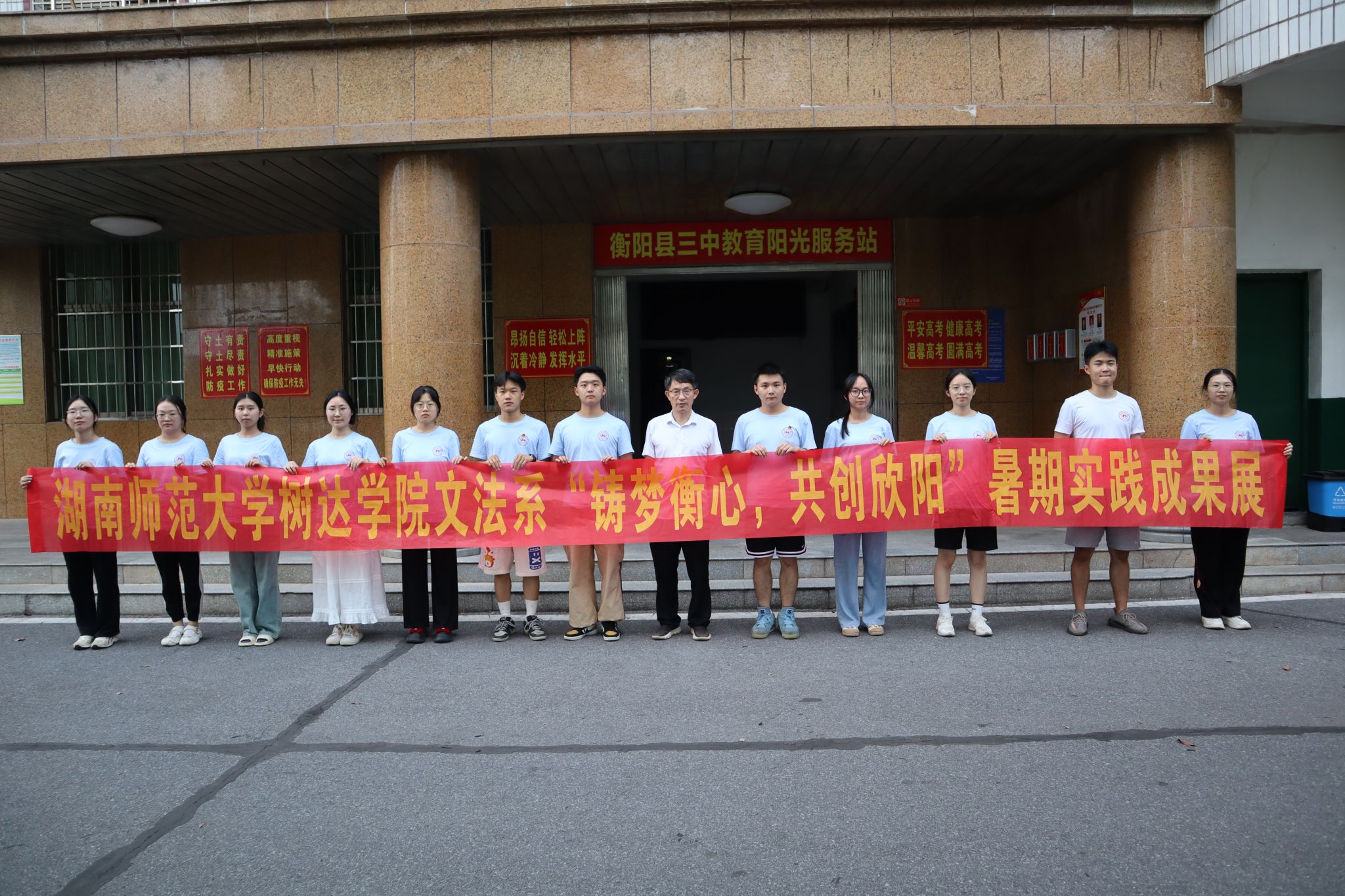 (记者 熊贝贝 刘婉婷 简翠峰)7月12日下午,我院文法系“铸梦‘衡’心,共创欣‘阳’”暑期社会实践团在衡阳县第三中学行政办公楼举行成果汇报展。衡阳县第三中学总务处主任黄永春出席汇报展。活动由实践团队长肖逸航主持。