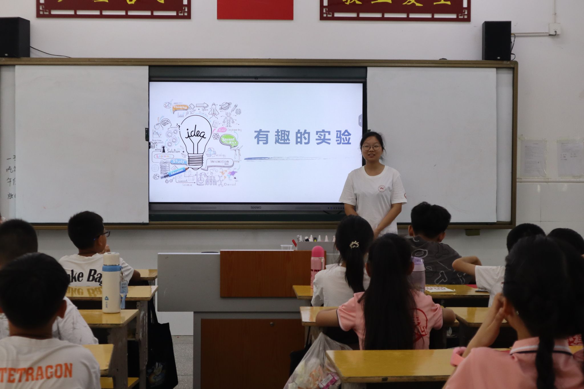 (记者 胡超凡 吴佳怡 许骄杨)7月20日上午,我院教师教育系 “星火筑梦”队在郴州市苏仙区良田镇良田学校开设趣味实验课堂。支教组成员张多轩担任主讲人。