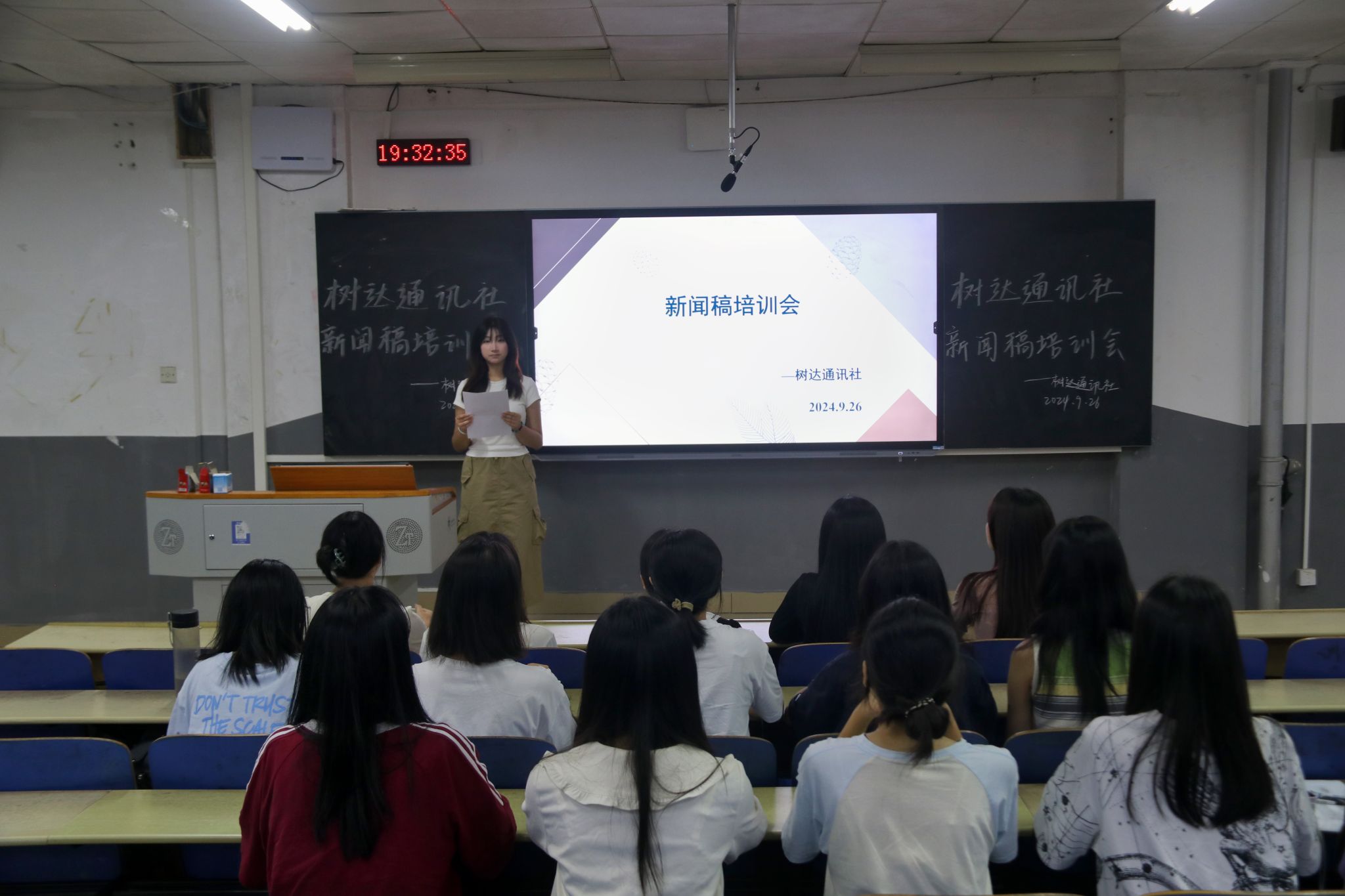 树达通讯社编辑部副部长梅子妍讲解树达新闻的投稿流程和要求。她表示,新闻稿件要求客观、真实,各宣传人员在投稿时应避免口语化表达,培养专业能力,以严谨的态度对待每一篇稿件。