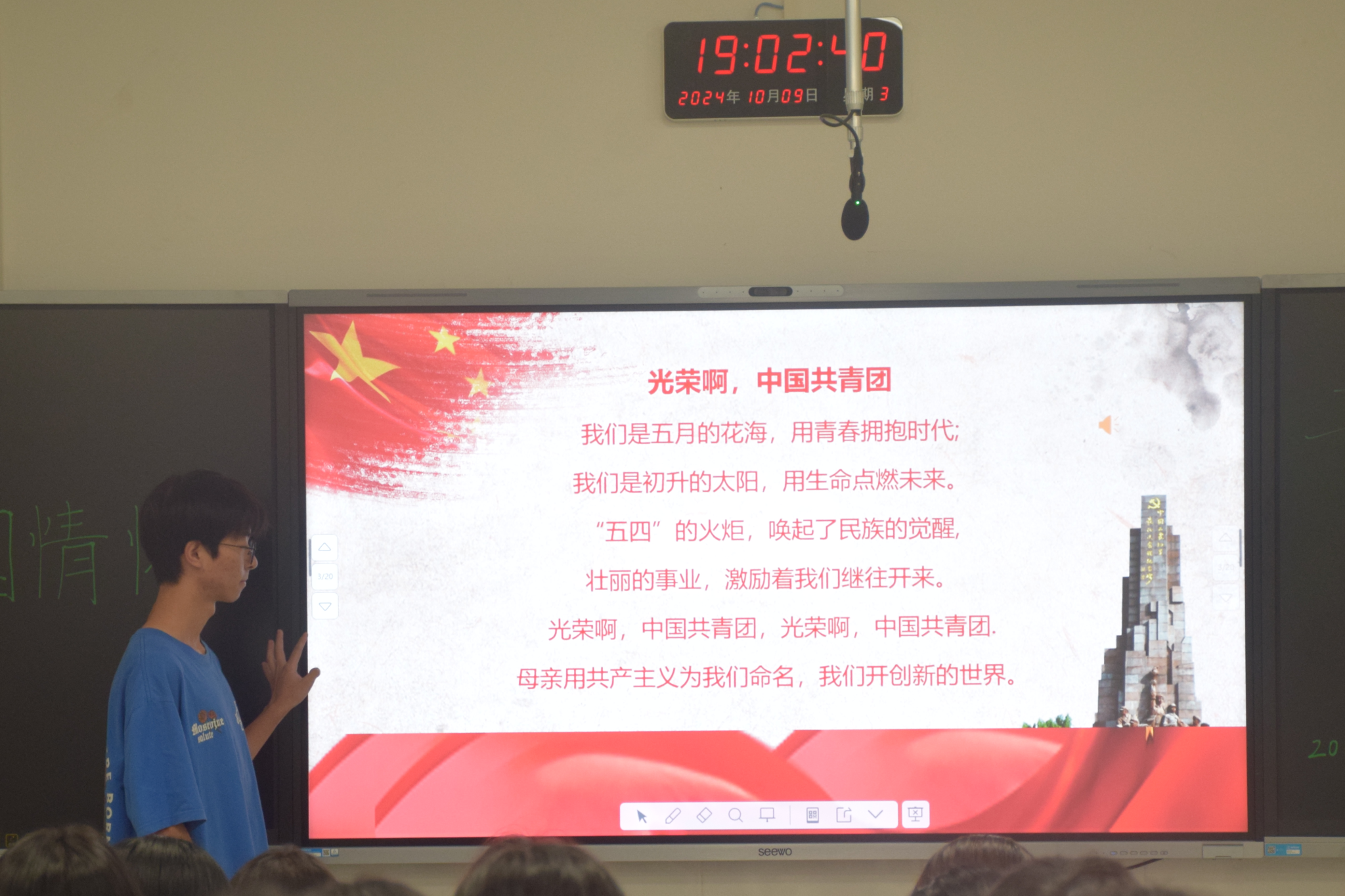 (通讯员 向汝雯 赵若彤 洪鹏志)10月9日晚上,我院教师教育系2023级历史学专业一班、物理学专业以及文法系2023级英语专业二班在第一教学楼313教室联合召开十月主题团日活动宣讲会。会议由2023级历史学专业一班团支部书记曾豪主持。