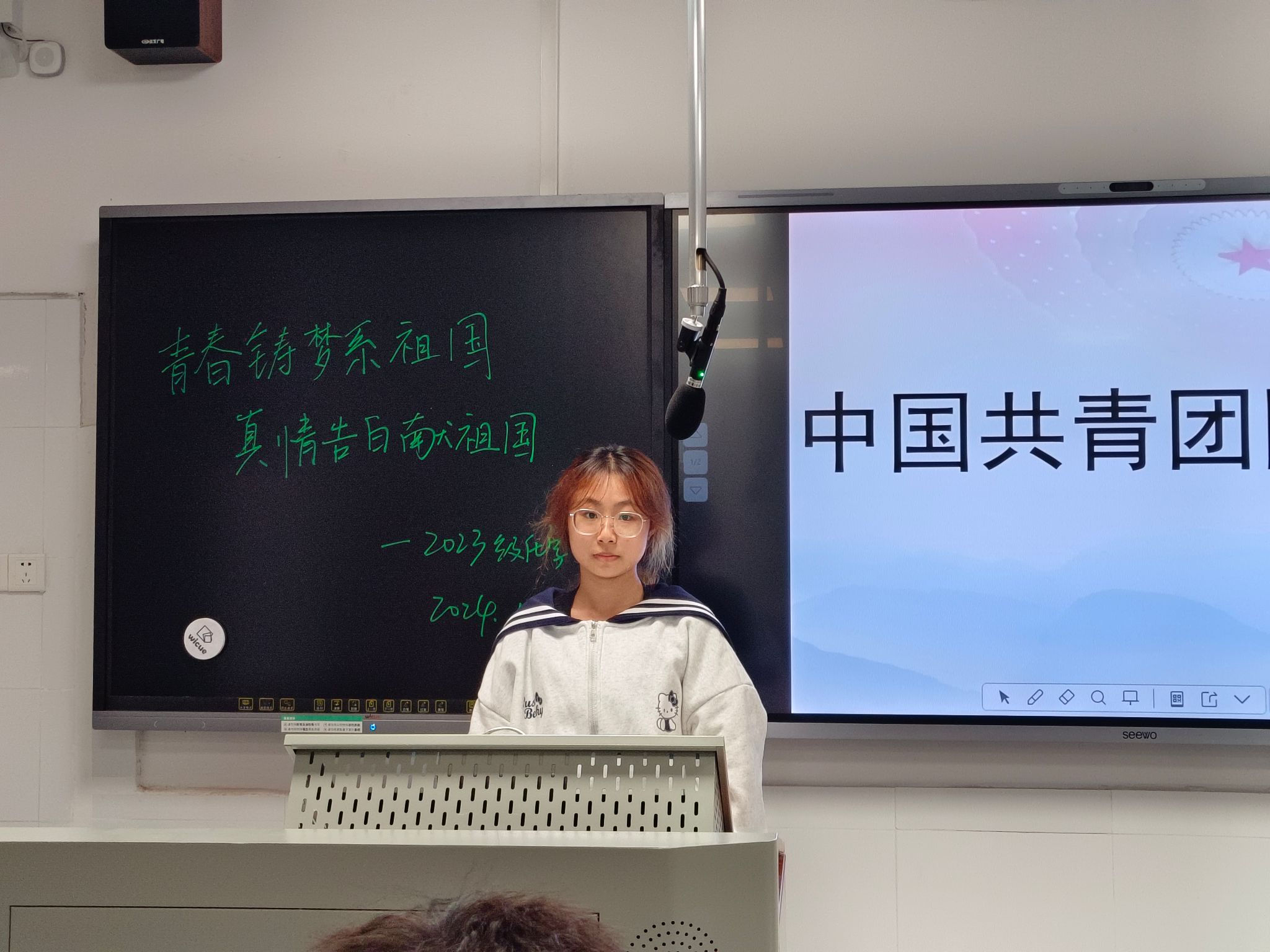 团员们合唱共青团团歌,观看共产党的发展史和奋斗史,感受祖国的美好和党的伟大。