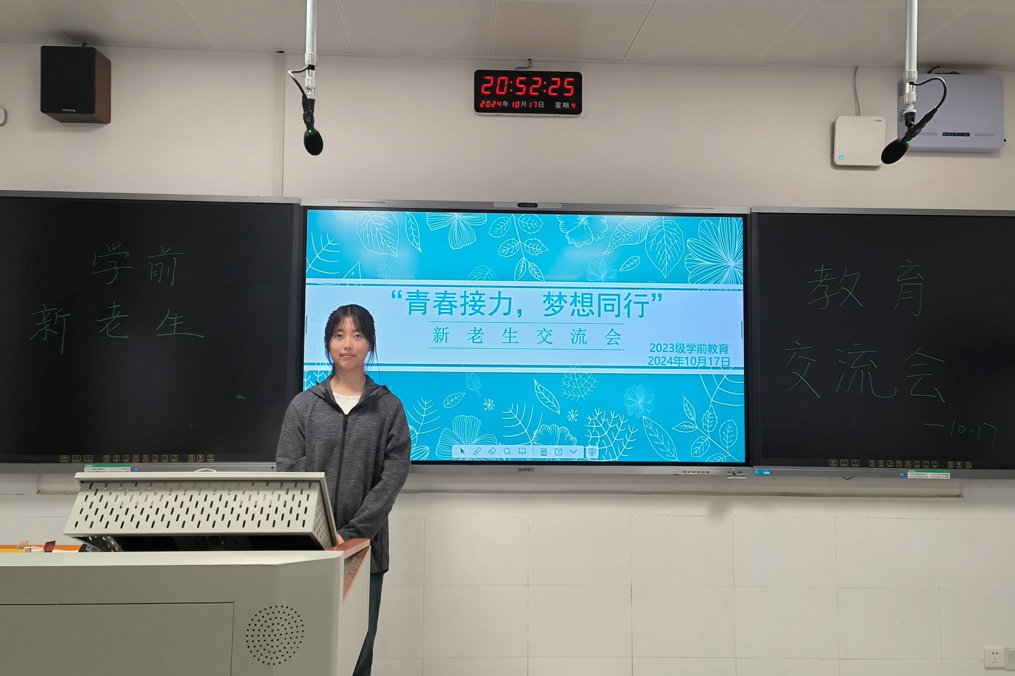 (通讯员 刘乐 夏章稳 胡超凡)10月17日晚,我院教师教育系2023级学前教育专业一班在第一教学楼202教室开展新老生交流会。活动由2023级学前教育专业一班班长罗琳娜主持。