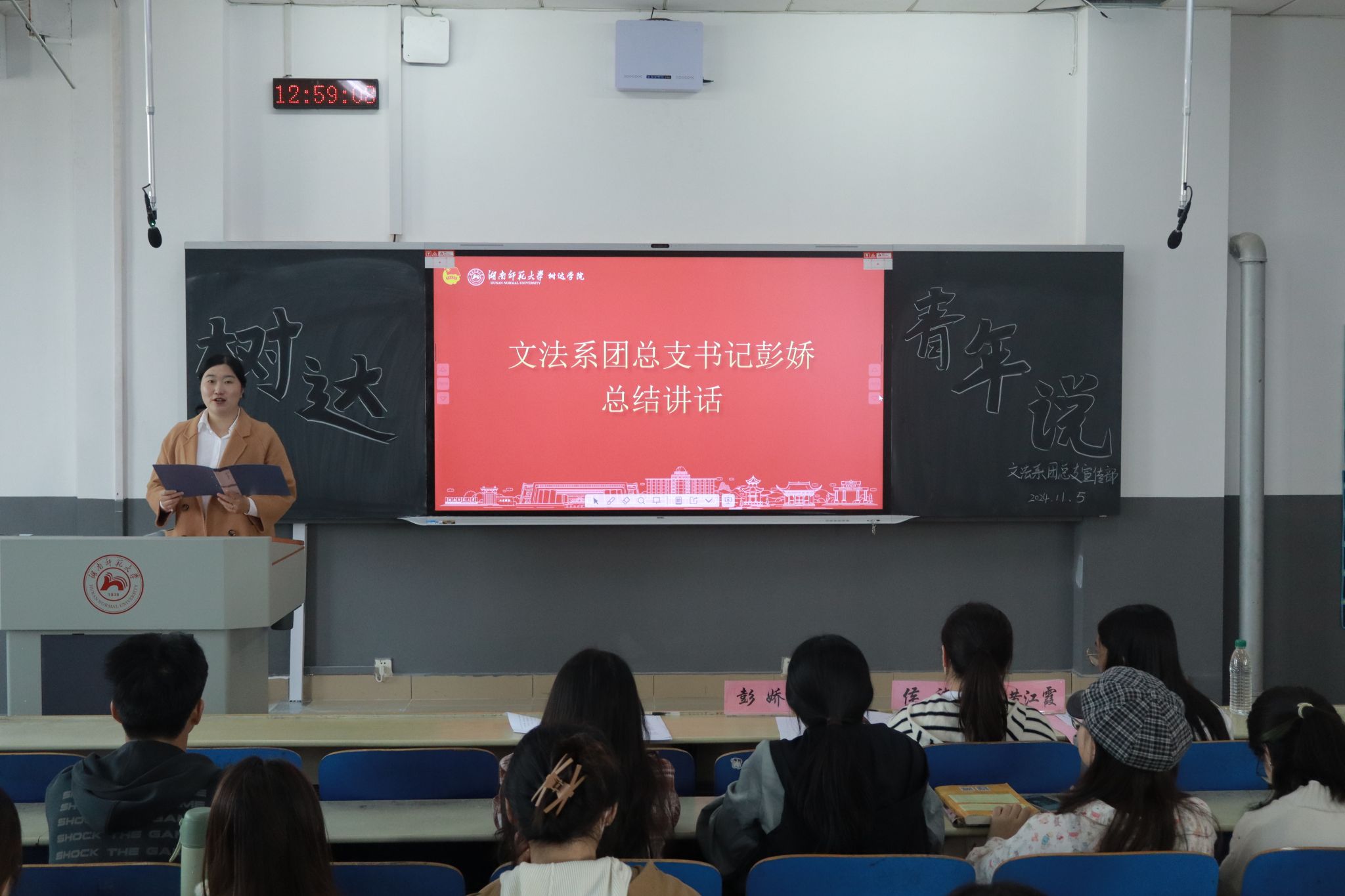 (通讯员 夏楷 刘婉婷 冯思怡)11月5日中午,我院文法系团学两会在树达楼515教室开展“青春织梦绘长卷,时代风华谱新篇”为主题的“树达青年说”演讲活动。