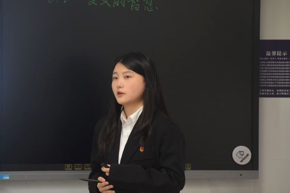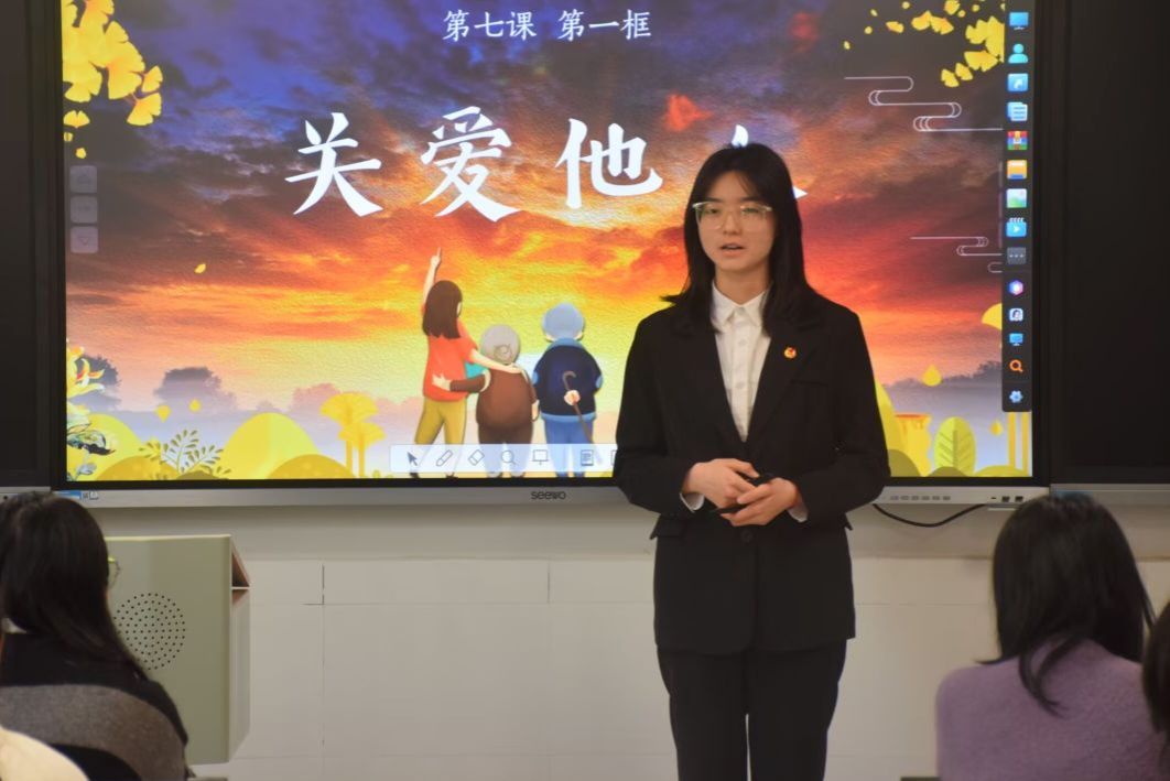 通过初赛选拔,共有十四名同学进入决赛。选手们依次上台进行教学展示,每位选手结合创设教学情境的PPT与模拟学生互动的方式,进行了十分钟的微型课堂教学。