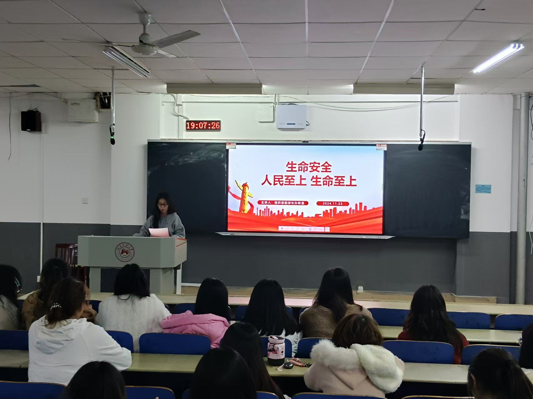 (通讯员 冯思怡 刘婉婷 康世强)11月21日晚,我院文法系团学两会与2023级汉语言文学专业二班在树达楼415教室开展以“珍视生命安全——人民至上、生命至上”主题的团日活动宣讲会。宣讲会由文法系团总支组织部副部长孙斯嘉主持。