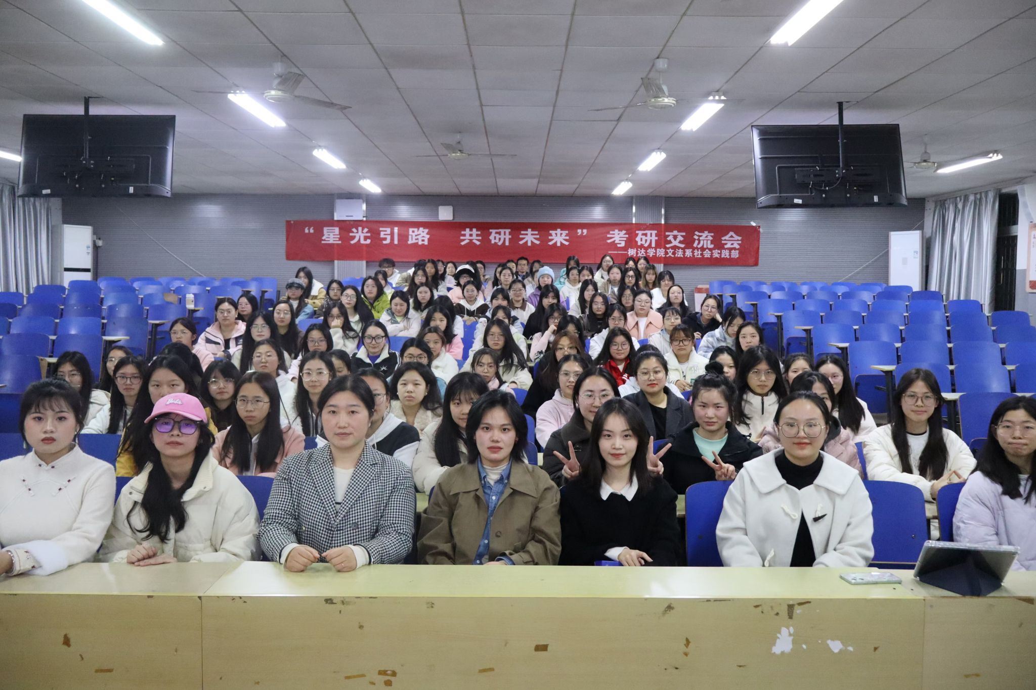 彭娇作总结发言。她指出,考研其实是一个考心态的过程,全体同学要保持好的心态,卯足一股坚持到底的干劲,朝着自己的目标迈进。