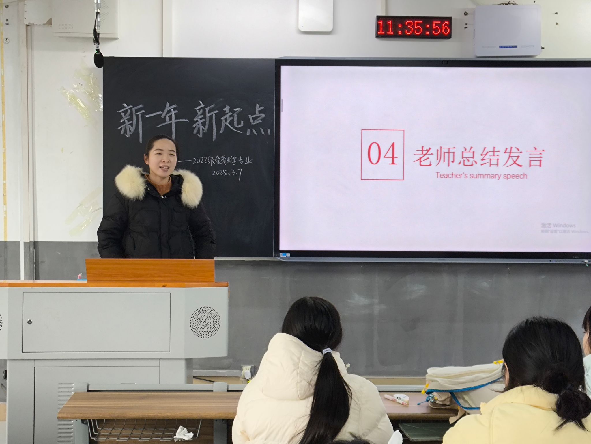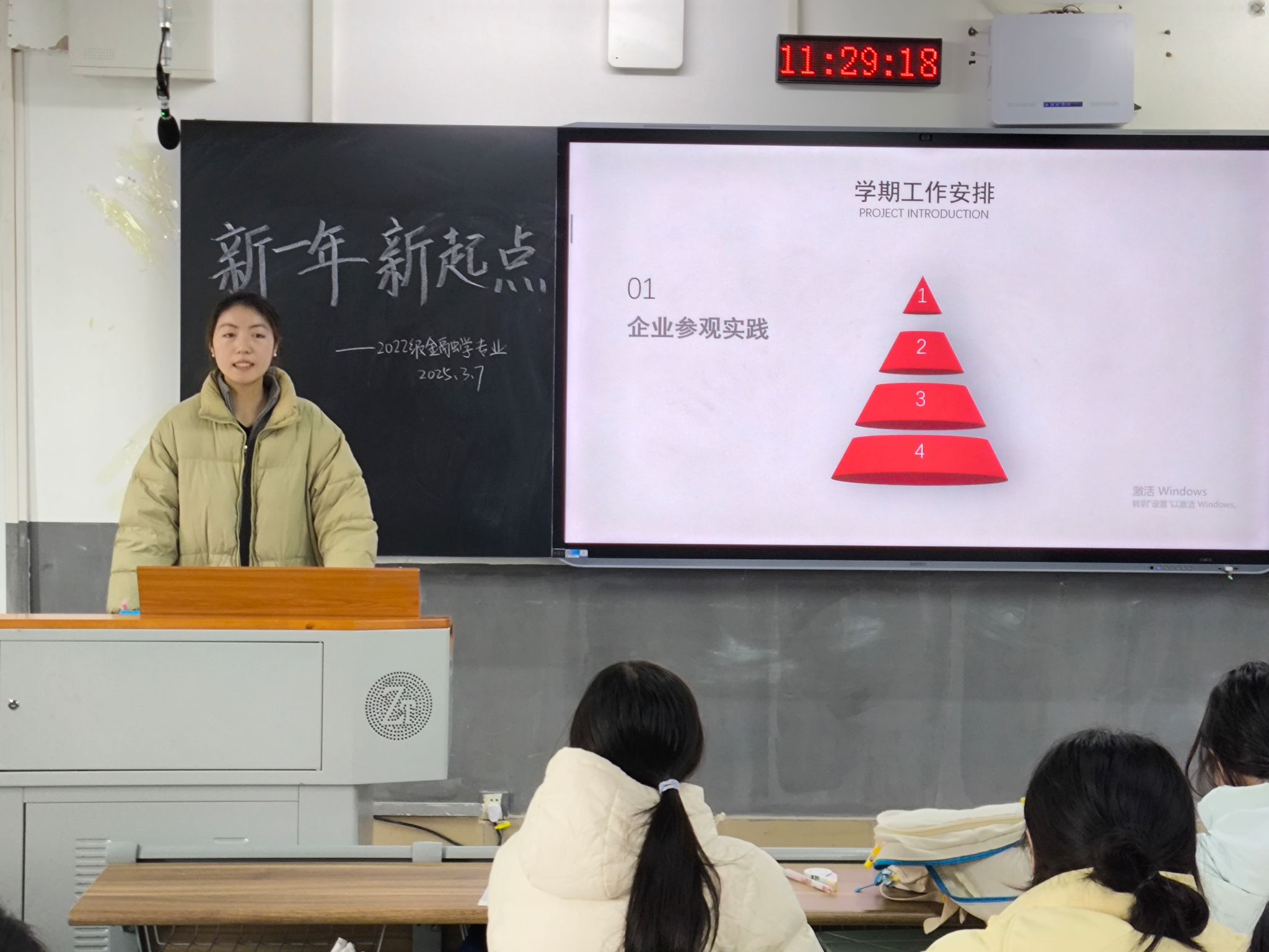 何灵姿围绕学科成绩状况、新学期班级建设、活动展开等方面进行规划部署。她希望,班级成员之间能相互扶持、相互督促、共同进步,共同建设良好班风。