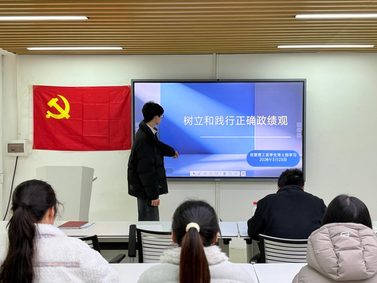 (通讯员 李嘉慧 吴雨霏 杨阳)3月23日上午,我院经管理工系学生党支部在党员之家开展以“树立和践行正确政绩观”为主题的微党课,微党课由郭岩涛主讲。